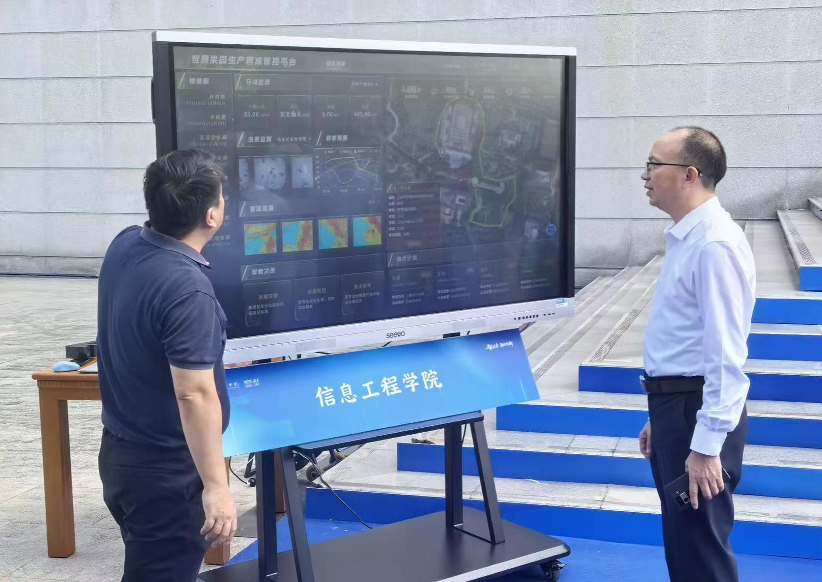 韶关学院副校长郭会时以及相关专家领导现场观摩演示,对智慧果园生产精准管控平台的应用成效给予高度评价。郭校长指出,该平台实现了信息技术与农业生产的深度融合,是农工协同创新应用的典范,展现了高校科研团队在服务现代农业发展中的创新实践与社会担当。郭校长希望借此次交流,推动双方在智慧农业领域开展更为广泛的合作与联合研究。