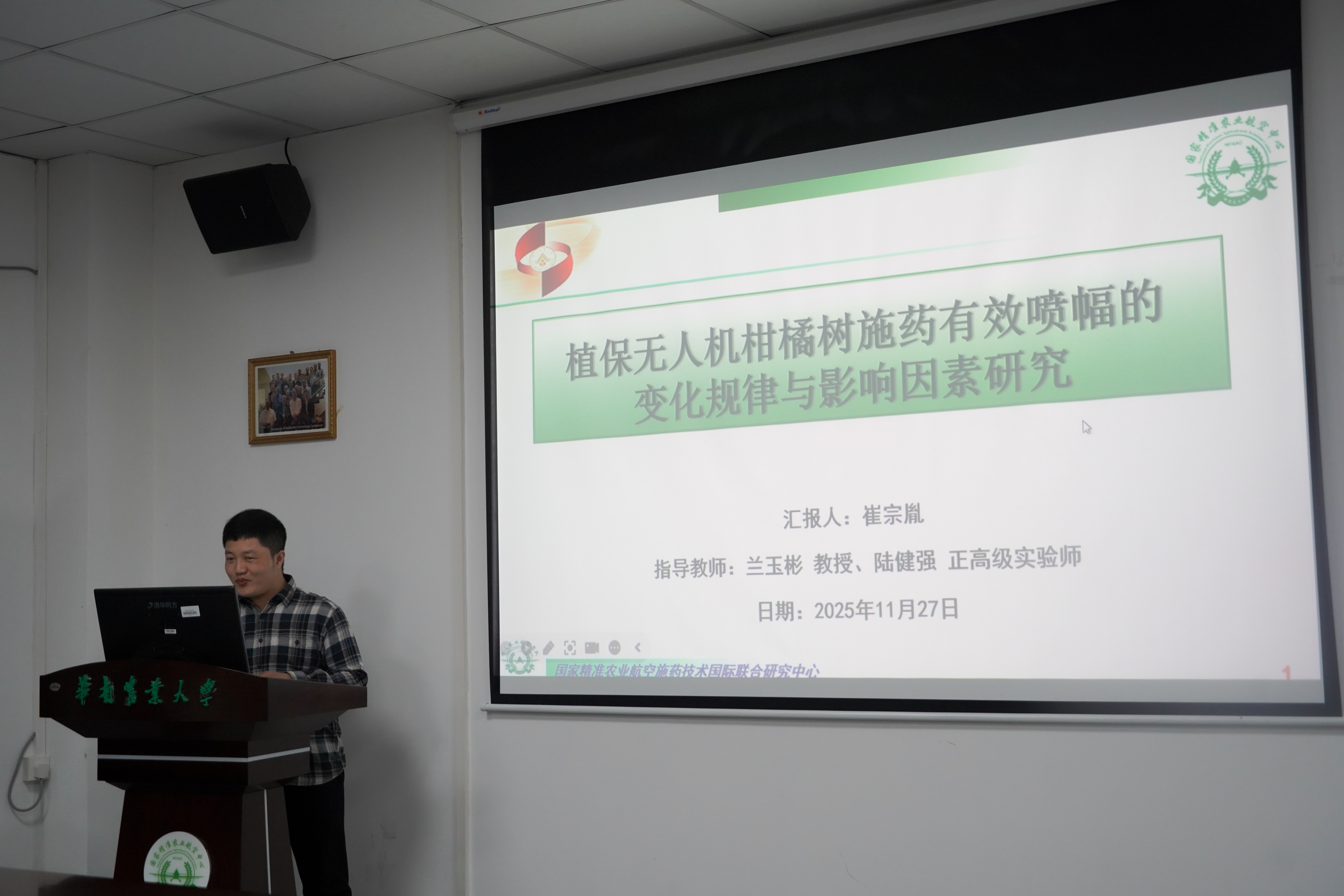 中心博士研究生崔宗胤紧随其后,以《植保无人机柑橘树施药有效喷幅的变化规律与影响因素研究》为题,结合大量田间试验数据,详细阐述了柑橘树种植场景下,施药有效喷幅与无人机参数、作物形态等因素的关联机制,为优化植保作业方案提供了数据支撑。