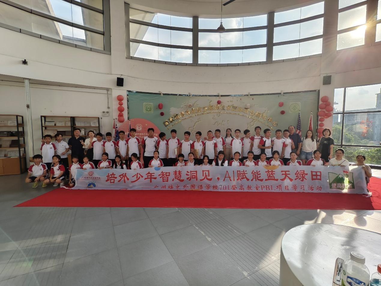活动尾声,全体师生在 “国家精准农业航空施药技术国际联合研究中心” 背景板前合影。此次活动是研究中心面向广州中学开展的大规模科普实践,体现了高校服务基础教育、助力科技创新人才早期培养的责任担当。